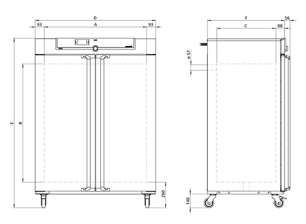 Dimensions w(D) x h(E) x d(F): 1224 x 1720 x 784 mm (d +56mm door handle)