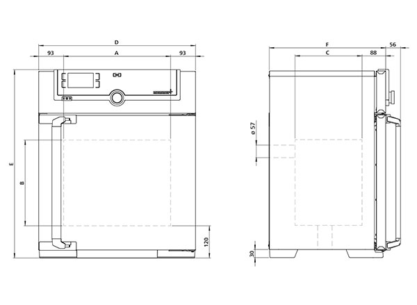 | Dimensions | w(D) x h(E) x d(F): 585 x 704 x 434 mm (d +56mm door handle) |